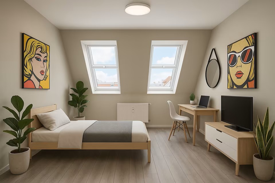 • Ausstattung: Flachdach, Oberlicht und Dachflächenfenster für optimale Lichtverhältnisse